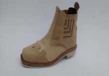 Botina Bretão em couro Florão Whisky, colada e costurada, solado látex. |